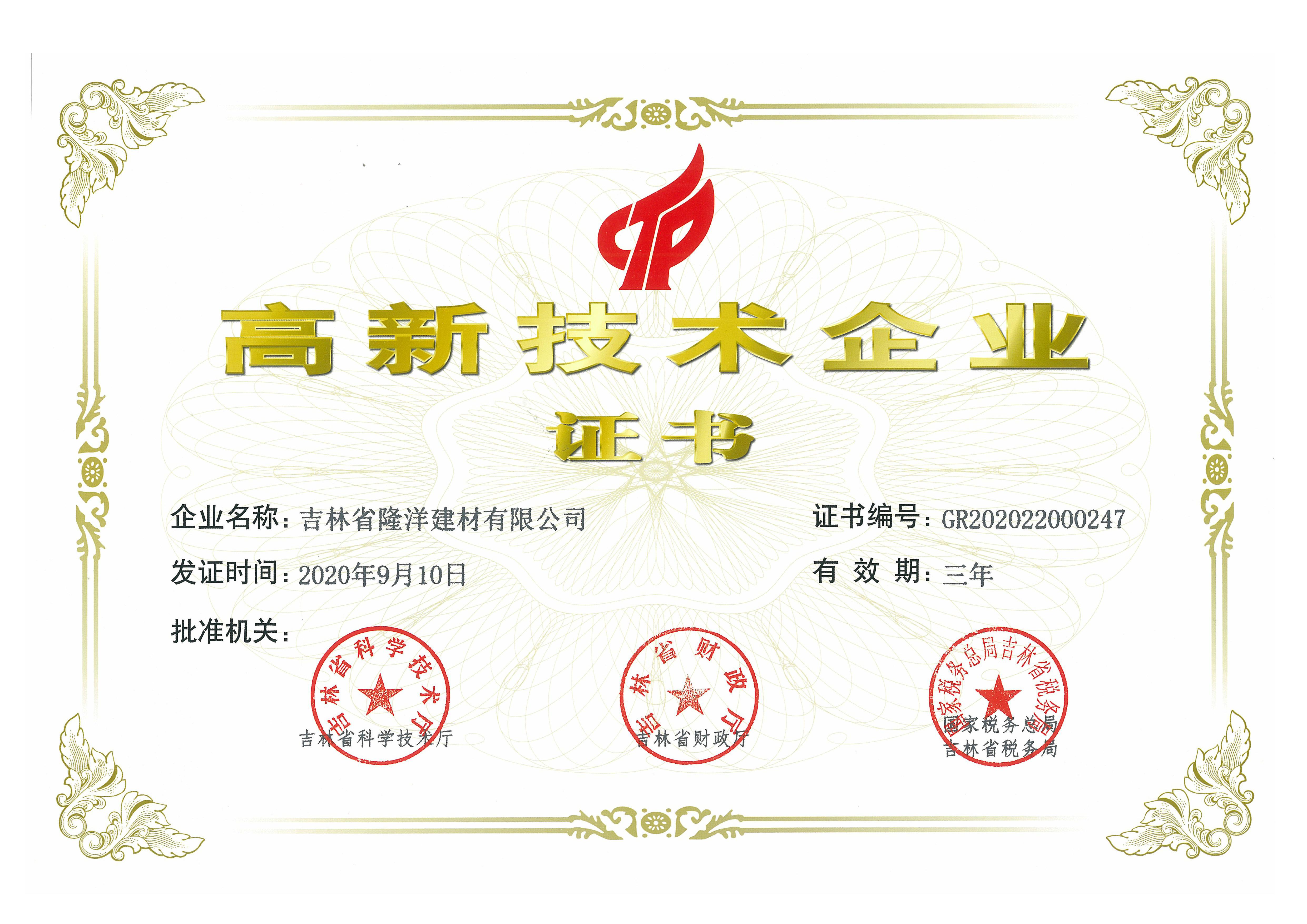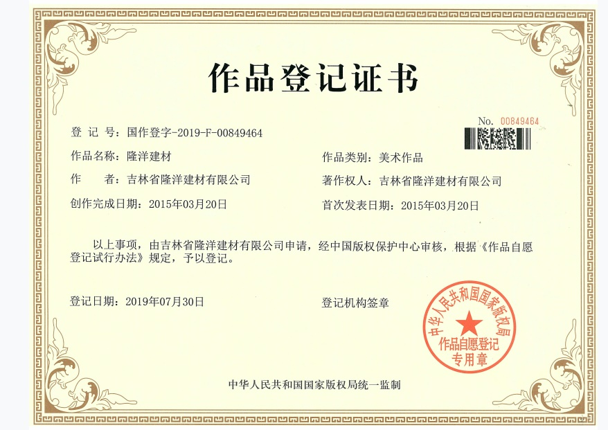 是吉林省隆洋建材有限公司生態(tài)安全與科技創(chuàng)新 “發(fā)明專利”;發(fā)明專利號(hào):ZL 2019 2 0908285.7。